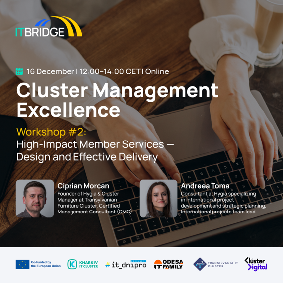 🚀 Анонсуємо другий воркшоп серії «Cluster Management Excellence»!Раді запросити вас на наступну сесію нашої безкоштовної програми, створеної для європейських та українських кластерів.✳️ Воркшоп 2: Високоефективні послуги для учасників — дизайн...