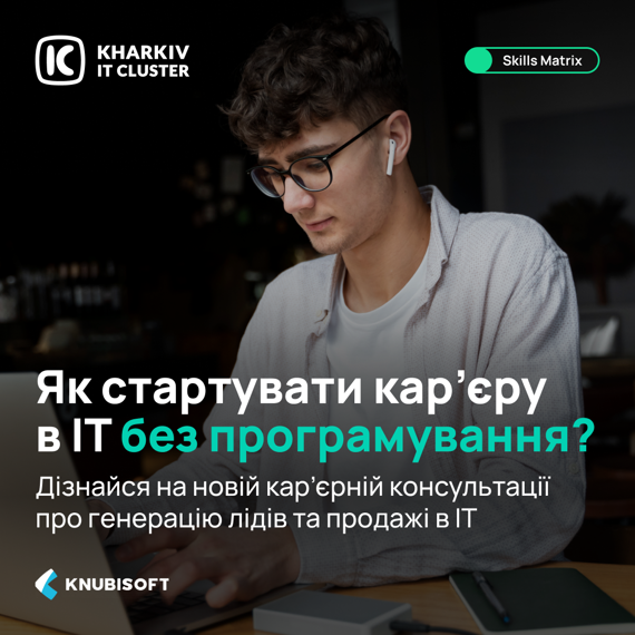 Kharkiv IT Cluster спільно з KnubiSoft запрошують на кар’єрну консультацію для тих, хто розглядає IT як наступний крок у професійному розвитку, але не має технічного бекграунду.Дата: 19 січняЧас: 18:00Формат: онлайнКонсультацію...