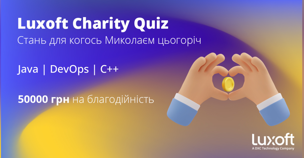 Читати повністюКруто знаєшся на Java, C++, DevOps та бажаєш долучитися до доброї справи? Тоді проходь Luxoft Charity Quiz та ставай одним з ініціаторів благодійного внеску до Caritas Ukraine....