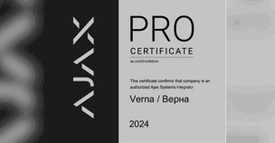 Компанія VERNA оголошує про успішне підтвердження своєї кваліфікації та отримання офіційного статусу авторизованого партнера Ajax Systems на 2024 рік! Останнім часом VERNA реал...