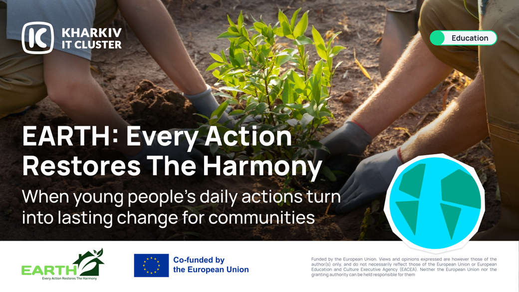 EARTH is an international Erasmus+ project that brings together youth, NGOs, and educational institutions from Ukraine, Moldova, Georgia, and Azerbaijan. The goal is to turn environmental enthusiasm into concrete projects with measurable results. Project duration: November 2025 – October 2027.