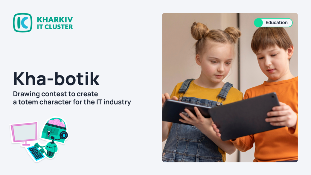 KHA-botik is a Kharkiv IT Cluster's contest where we asked children to picture a totem for the Kharkiv IT industry.