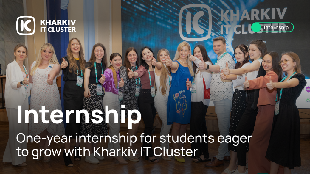 The year-long internship for students is an opportunity for professional growth, mentorship, and involvement in real projects in content creation, communications, events, and project management. The program is run by Kharkiv IT Cluster to support young talents and build a community of proactive students.