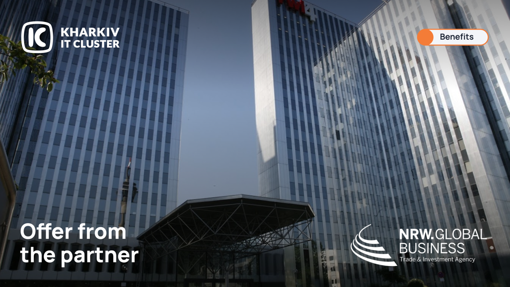 NRW.Global Business collaborates with the Kharkiv IT Cluster, fostering the development of the technology sector in Ukraine. That’s why the agency offers exclusive opportunities for members of the Kharkiv IT Cluster.- International support: The agency helps find optimal investment locations and opens new markets through its network of international offices.