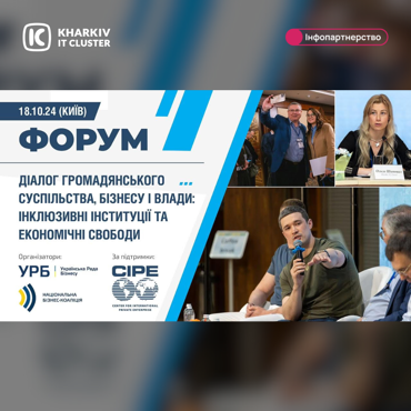 Kharkiv IT Cluster запрошує на форум «Діалог громадянського суспільства, бізнесу й влади: інклюзивні інституції та економічні свободи»