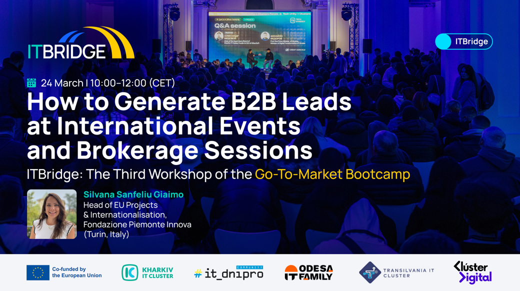 The third workshop of the Go-To-Market Bootcamp within the ITBridgeproject will help you understand how to effectively prepare for European B2B events, increase your company’s visibility, and convert new contacts into successful leads.