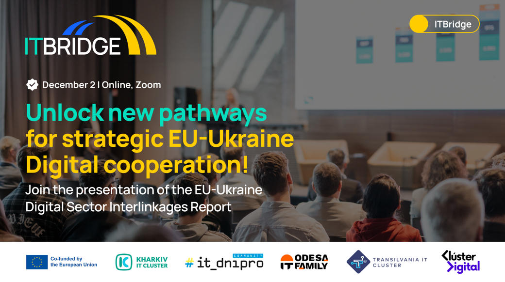 To highlight the specific areas where this partnership can scale further, Kharkiv IT Cluster, within the strategic initiative ITBridge and in cooperation with Transilvania IT Cluster, Cluster Digital de Catalunya, IT Dnipro Community, and Odesa IT Family, will present the analytical report EU–Ukraine Digital Sector Interlinkages Report. We invite you to join the event.