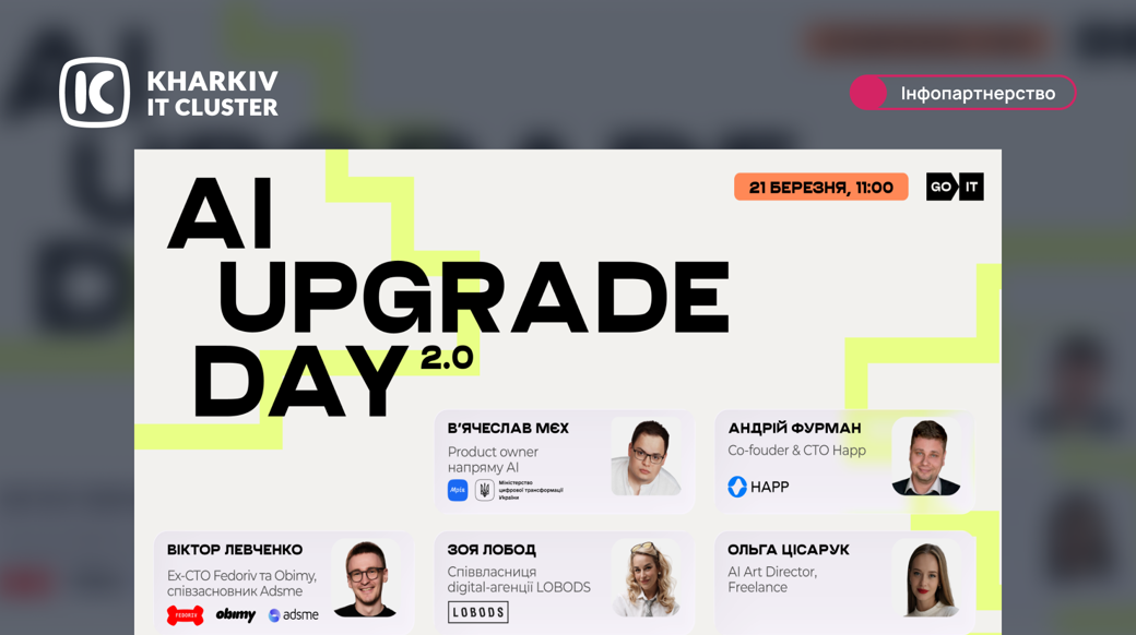 21 березня відбудеться AI Upgrade Day 2.0 — безоплатна онлайн-конференція для підприємців, фрилансерів, світчерів і всіх, хто хоче знайти своє місце в AI-індустрії.