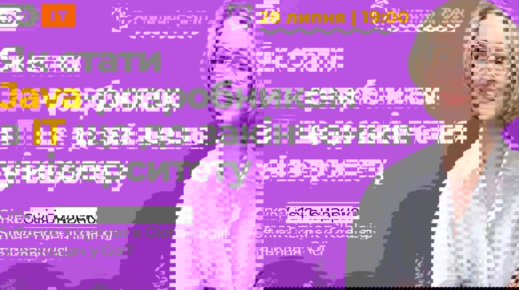 Хочеш опанувати нову професію і працювати в ІТ? Тоді бери участь у безкоштовному вебінарі на тему «Як стати Java-розробником в ІТ ще до закінчення університету» від компанії GoIT. На вебінарі ти дізнаєшся: 🔸 які напрями в ІТ є найпопулярнішими; 🔸 що треба знати, аби стартувати кар’єру Java-розробника; 🔸 скільки заробляють джавісти. Також ти отримаєш можливість безкоштовно навчатися на курсі Java з оплатою після працевлаштування 😎 ⏳ Коли: 28 липня о 19:00 💰 Вартість: безкоштовно