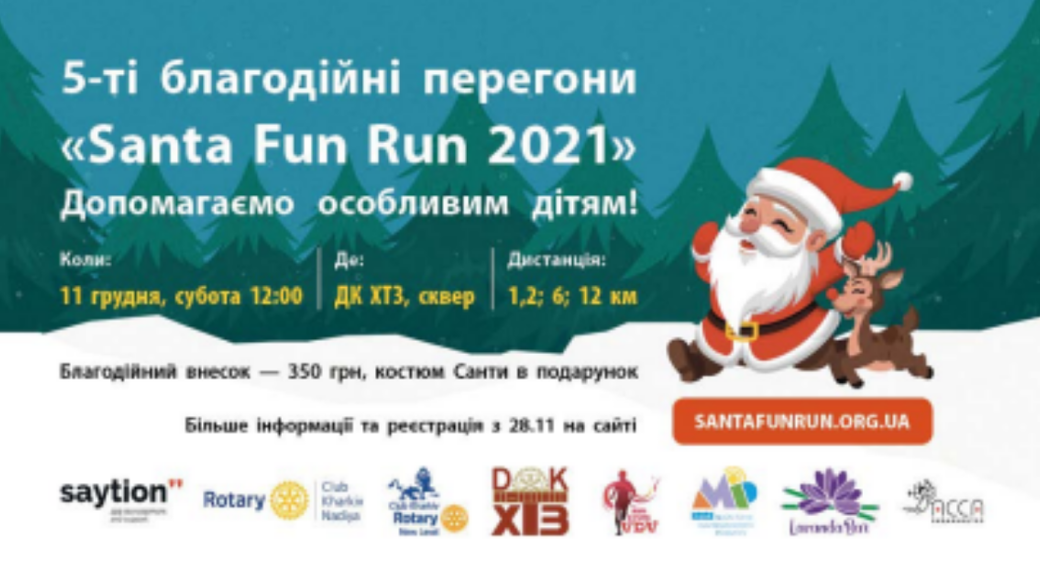 Гроші, зібрані на онлайн перегонах підуть на створення музичного театру (музичні інструменти та реквізит), для соціалізації дітей з аутизмом. (Ротарі клуб "Харків Надія") Всі учасники в он-лайн перегонів, отримають сертифікати від справжнього Санта Клауса з Лапландії. Біжимо разом з друзями, родиною, собаками, колегами. Підтримка проекту соціально відповідальним бізнесом вітається.