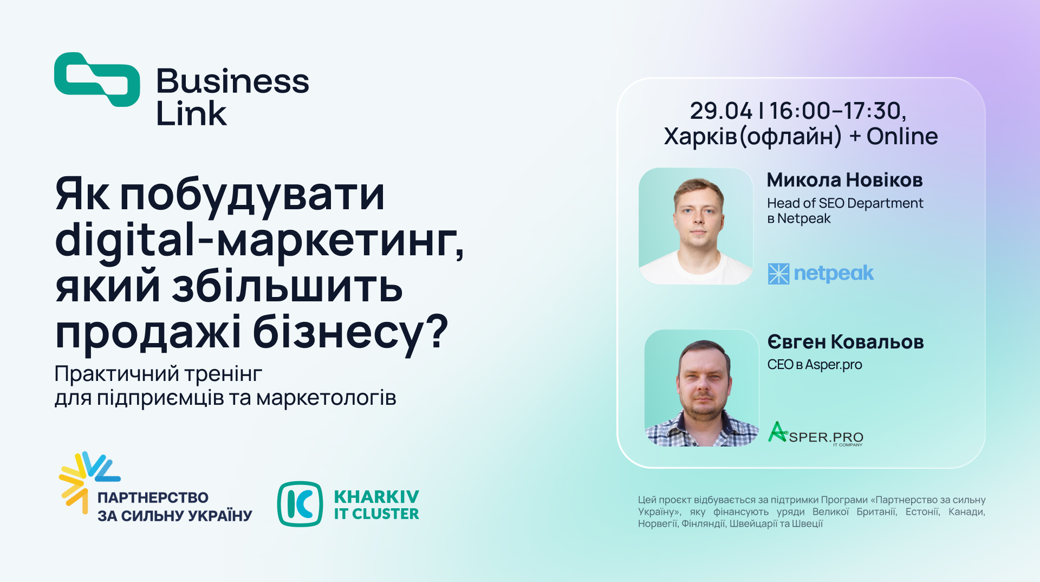 Kharkiv IT Cluster у межах проєкту BusinessLink проводить безоплатний практичний тренінг для підприємців та маркетологів — про те, як вибудувати digital-маркетинг, який конвертує трафік у продажі.