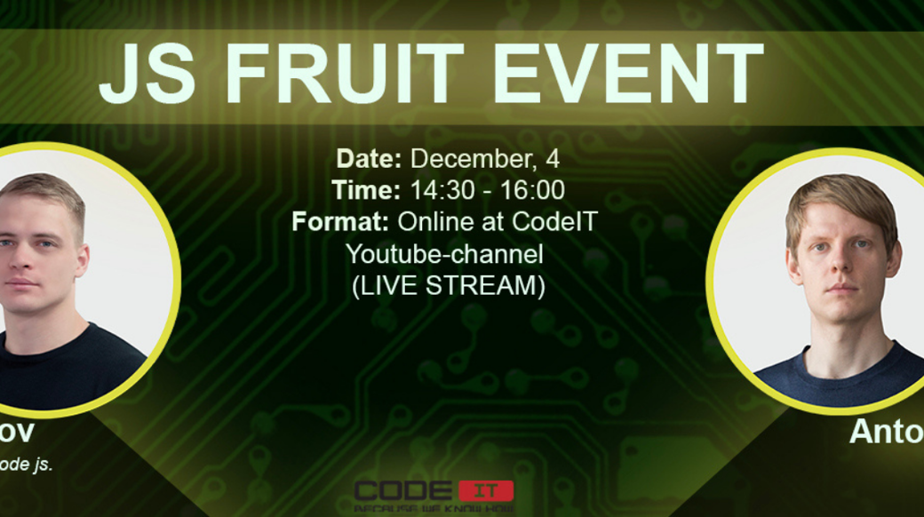 CodeIT Fruit Events – це корисні івенти, в рамках яких досвідчені експерти діляться своїм актуальним досвідом. Усередині компанії ми проводимо подібні освітні івенти регулярно. З кожним івентом "урожай" наших фруктів зростає, і ми з радістю ділимося своїми знаннями з ширшою аудиторією. Ласкаво просимо до нашого Фруктового Всесвіту! Ми раді анонсувати цикл Node.js мітапів і нашу першу зустріч ми проведемо продуктивно з експертами нашої компанії: