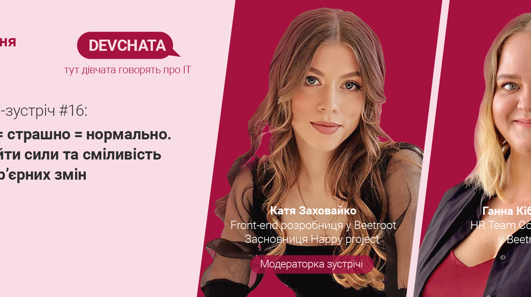 Якщо ти з нами вперше, нагадаємо, DEVCHATA — це серія онлайн-зустрічей, під час яких розробниці, менеджерки, дизайнерки та дівчата, що займають інші позиції у різних IT-компаніях України, говорять про Tech-індустрію, діляться професійним та особистим досвідом.