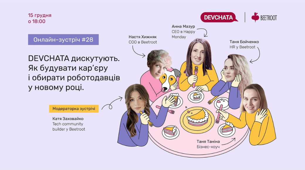 Якщо ти з нами вперше, нагадаємо, DEVCHATA — це серія онлайн-зустрічей, під час яких розробниці, менеджерки, дизайнерки і дівчата, що займають інші позиції у різних IT-компаніях України, говорять про tech-індустрію, діляться професійним та особистим досвідом.