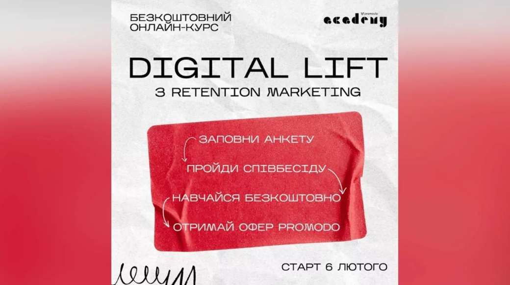 Promodo academy підтримує талановитих українців та українок, й оголошує набір на безкоштовну програму Digital Lift з Retention Marketing ⚡️