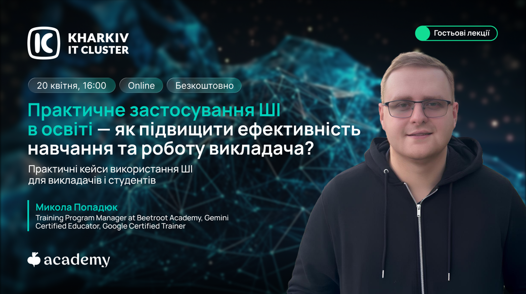 Kharkiv IT Cluster запрошує на вебінар, присвячений практичному застосуванню штучного інтелекту в освіті.