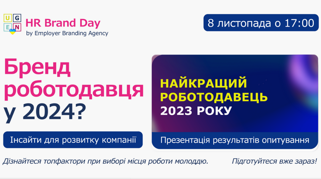 UGEN готує інсайти для покращення вашого Employer Branding у 2024. Не пропустіть цю можливість отримати актуальні знання та інструменти! 🗓 Дата: 8 листопада 📍 Формат: Онлайн Організатори: HR-бренд агенція "UGEN" Реєструйтесь вже зараз: https://forms.gle/M4u83UCakS9976SC6 ❤️ Вказуйте промокод #HRBrandDay20 у формі реєстрації та отримайте знижку 20%.Новий "HR Brand Day" is coming... 🚀