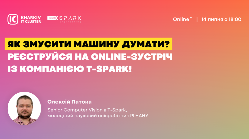 📢 Kharkiv IT Cluster запрошує учнів 8-11 класів і студентів коледжів на нову зустріч Kids2IT! Зустріч відбудеться завдяки компанії T-Spark 🤗 T-Spark успішно займається embedded-розробкою: дронами та системами відстежування. Спікер зустрічі: 🕵‍♂️ Олексій Патока, Senior Computer Vision в T-Spark, молодший науковий співробітник РІ НАНУ. 👀 На зустрічі поговоримо про: ▪️ виклики та масштаб задач, які вирішують спеціалісти в T-Spark; ▪️ як айтівці роблять машини розумними (в тому числі й військові); ▪️ як надати машинам можливість бачити та розуміти цей світ і працювати автономно. 👉👉👉 Швидше реєструйся на KIds2IT! 🗣 Коли: 14 липня о 18:00 🦾 Де: онлайн в Zoom 🚥 Реєстрація за посиланням: https://forms.gle/K6XUmXCTwwecv8DP9 Kіds2IT – це профорієнтаційні зустрічі для школярів і студентів коледжів. У кожного з учасників є можливість більше дізнатися про професії в ІТ та обрати свою професію в майбутньому. 🌐 Чекаємо тебе 14 липня о 18:00 на Kіds2IT!