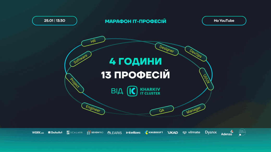 Приходь на Марафон ІТ-професій, де провідні ІТ-компанії України в експрес-форматі розкажуть тобі про 13 різноманітних ІТ-професій!