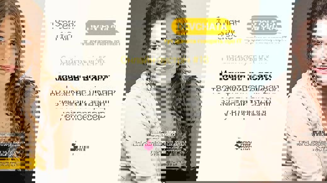 Якщо ти з нами вперше, нагадаємо, DEVCHATA — це серія онлайн-зустрічей, під час яких розробниці, менеджерки, дизайнерки та дівчата, що займають інші позиції у різних IT-компаніях України, говорять про Tech-індустрію, діляться професійним та особистим досвідом. Маєш питання чи пропозиції щодо наступних тем/спікерок? Надсилай їх нашій команді: Таня, tatyana.nityagina@beetroot.se Діана, diana.onodvaliuk@beetroot.se
