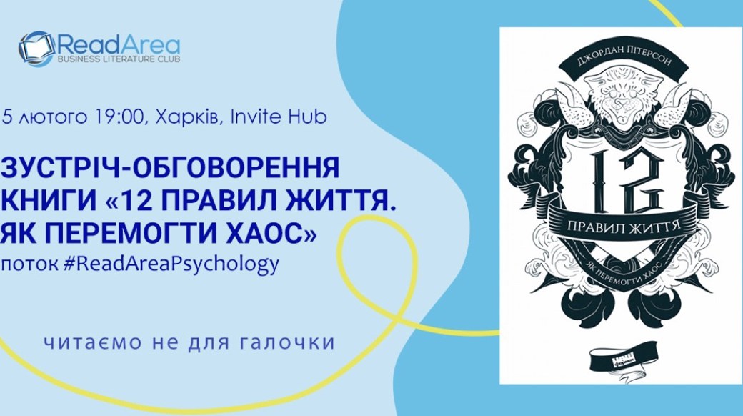 Invite Hub - Скрипника 14ReadArea Business Literature Club запрошує вас на зустріч-обговорення книги Джордана Пітерсона «12 правил життя. Як перемогти хаос»