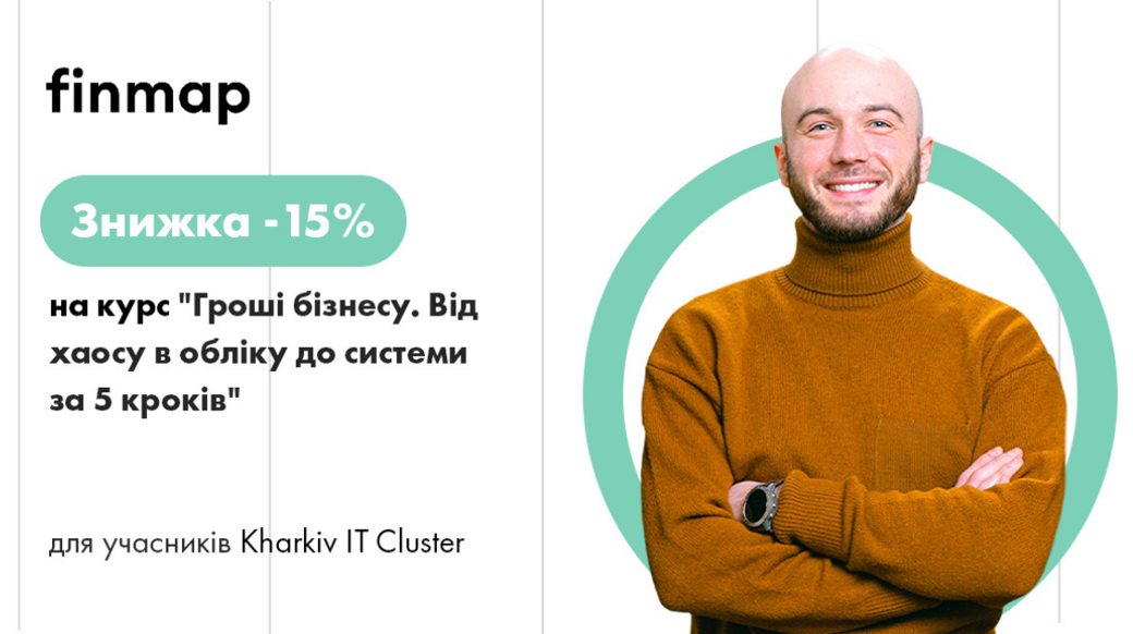 Сервіс обліку грошей для сучасного бізнесу Finmap дарує усім резидентам Kharkiv IT Cluster знижку 15% на онлайн-курс «Гроші бізнесу: Від хаосу в обліку до системи за 5 кроків».