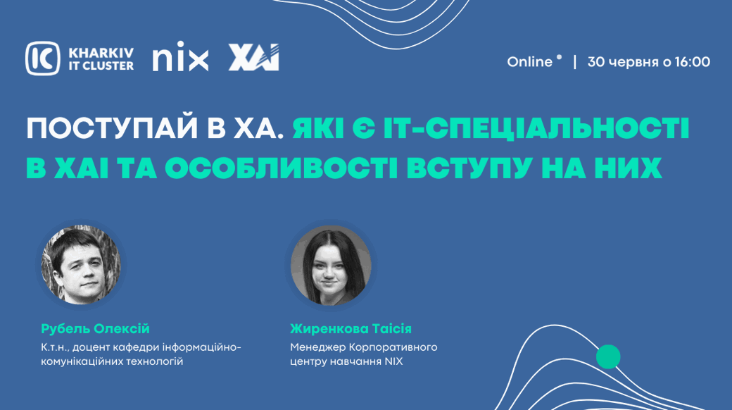 Kharkiv IT Cluster разом із Харківським авіаційним інститутом (ХАІ) та IT-компанією NIX проведемо зустріч «Поступай в ХА. Які є ІТ-спеціальності в ХАІ та особливості вступу на них».