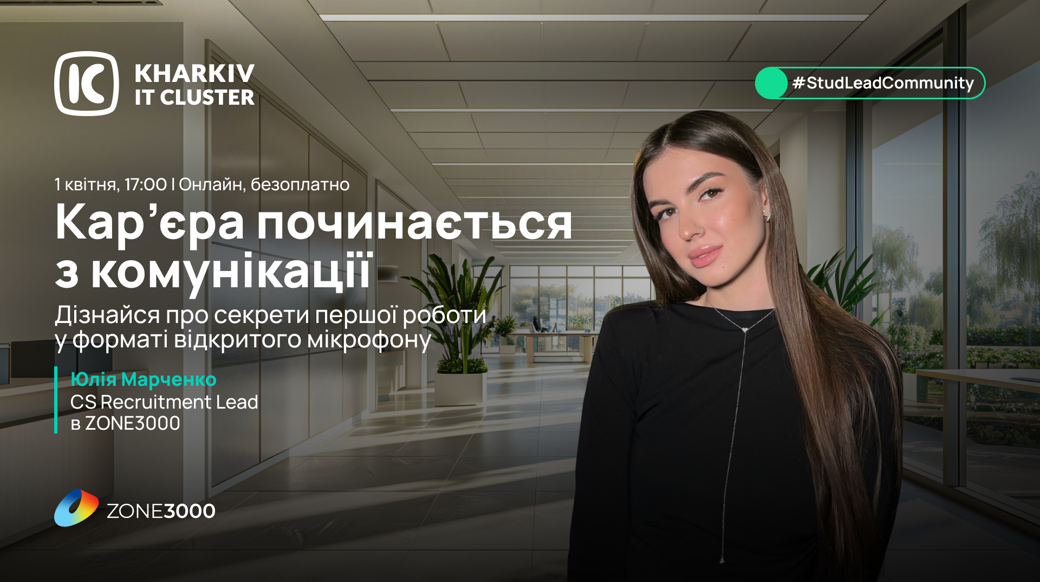 Kharkiv IT Cluster разом із ZONE3000 проводять зустріч у форматі відкритого мікрофона для студентів, лідерів самоврядування та всіх, хто планує старт кар'єри.