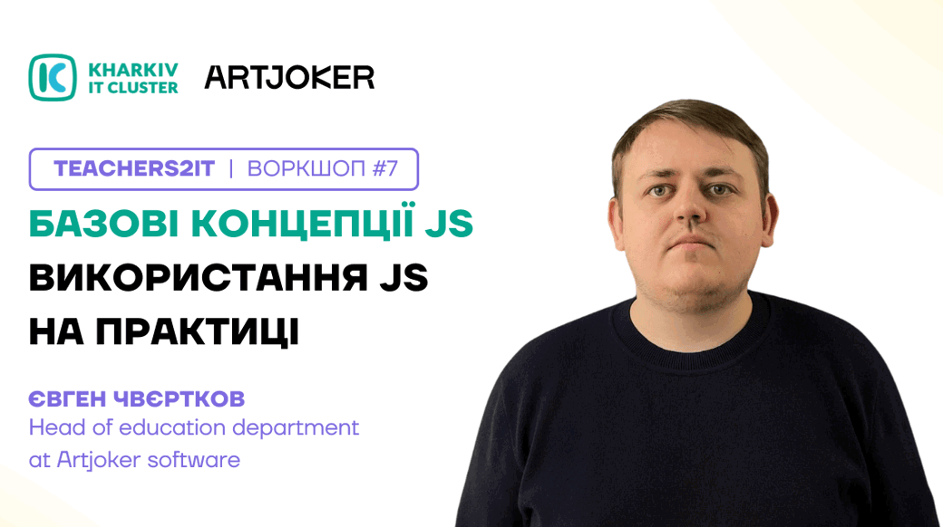 📢 Спікер заходу — Євген Чвєртков, Head of education department у компанії Artjoker software.