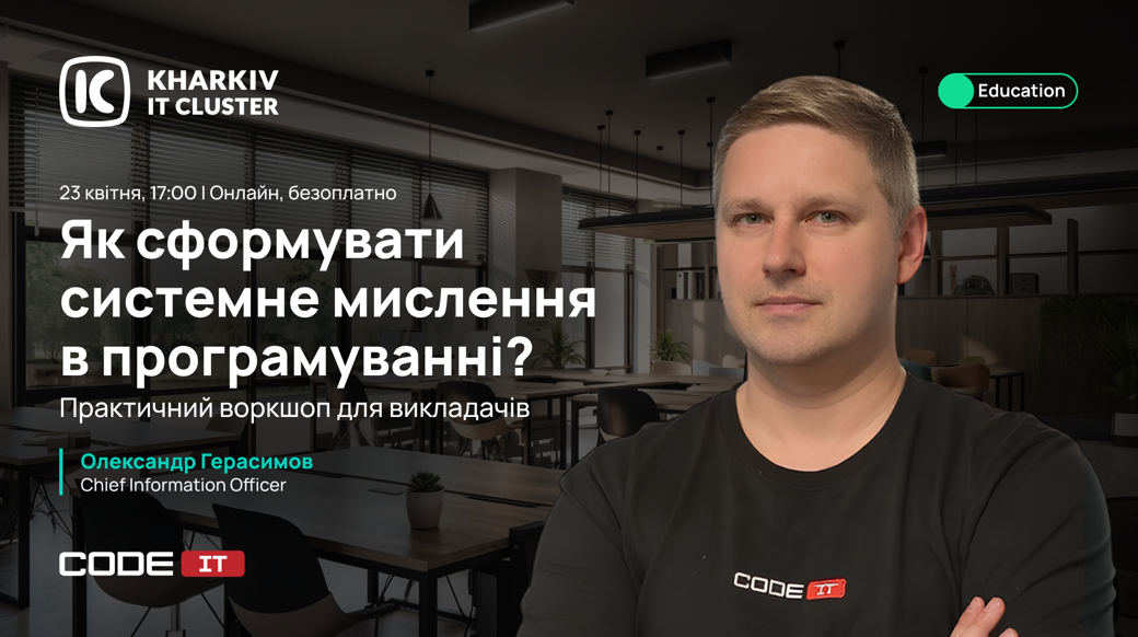 Kharkiv IT Cluster запрошує вчителів та викладачів на вебінар «Як сформувати системне мислення у програмуванні та виборі архітектури?».