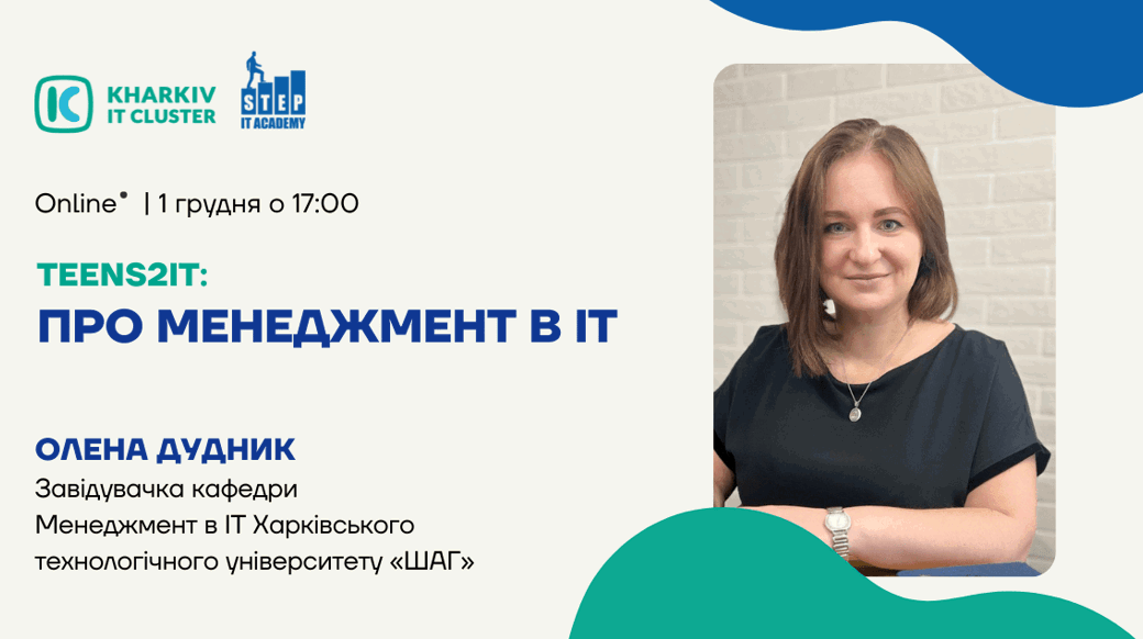 🗣 Спікерка зустрічі — Олена Дудник — завідувачка кафедри Менеджмент в ІТ Харківського технологічного університету «ШАГ». Наразі займається організацією та керуванням бізнес-процесами в ІТ. Олена має понад 10 років педагогічного досвіду роботи зі студентами у сфері менеджменту. Вона мала змогу підготувати безліч спеціалістів і готова поділитися таємницями цієї галузі.