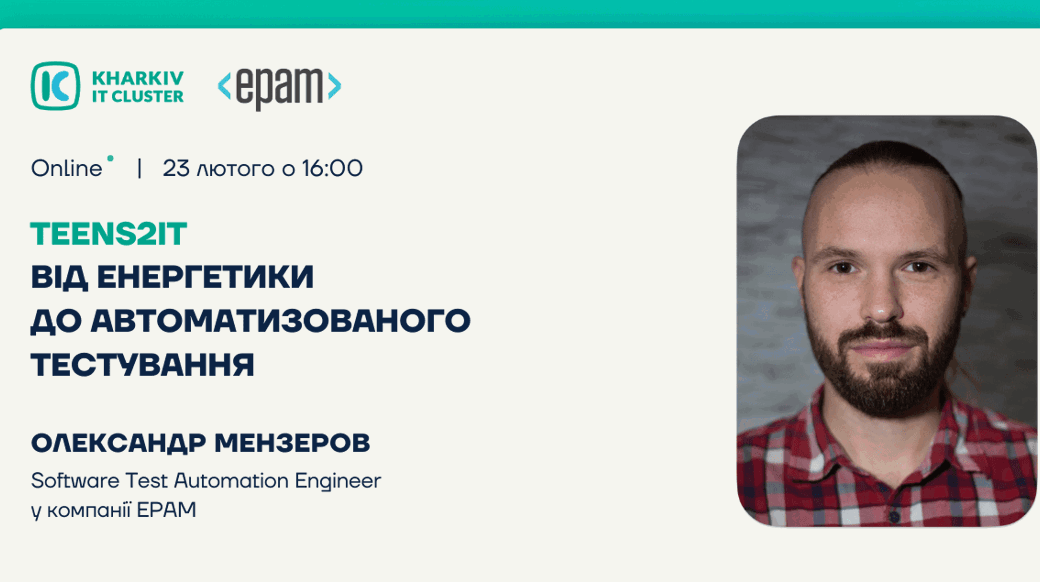Уже 23.02 о 16:00 запрошуємо всіх охочих пізнати ІТ-галузь на інтерв'ю з енергійним та позитивним Олександром Мензеровим — Software Test Automation Engineer у компанії EPAM.