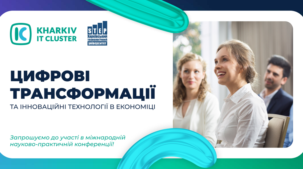 Запрошуємо науково-педагогічних, педагогічних працівників, молодих учених, здобувачів освіти закладів фахової передвищої та вищої освіти взяти безкоштовну участь у Міжнародній науково-практичній конференції «Цифрові трансформації та інноваційні технології в економіці».