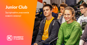 Читати повністюJunior Club by Kharkiv IT Cluster — це унікальний закритий клуб для створення community студентів, які планують працювати в IT, для прокачки їх soft skills. Цілі клубу: Допомог...