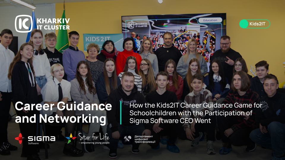 IT is not only about programming or testing. The modern industry offers many non-technical roles, such as project managers, marketers, designers, HR specialists, and others. Thanks to the Kids2IT career orientation game, every student could find their place in this field, unleash their potential, and contribute to the development of innovations. IT specialists from Sigma Software, Dmytro Bolharov and Yuliia Poliakova, joined the Kids2IT career guidance game with the students. Together with the game mentors, educational coordinators of Kharkiv IT Cluster, they guided the schoolchildren into the IT world. The students not only learned about the various professions in IT but also delved deeper into how IT products are developed and tried on the role of IT specialists in a team with experienced professionals. While working on startup ideas, the mentors explained how real IT companies operate and what aspects deserve special attention. As a result of their productive work, two teams of participants, with the help of mentors, developed and validated their own innovative ideas, including a solution to organize volunteer work and the design of a superpowered processor with a frequency of 7 GHz. The participants received detailed feedback, gained a better understanding of product development mechanisms, and learned the principles on which teamwork is built. At the end of the game, the participants received gifts from Sigma Software and Star for Life Ukraine, as well as sweets from the charitable fund of Kharkiv IT Cluster —IT4Life. We continue to create events that inspire youth to dream, learn, act, and reach new achievements! Kharkiv IT Cluster thanks Sigma Software, Star for Life Ukraine, the Department of Education, and the Department of Digital Transformation for the opportunity to create great projects together!Background Information