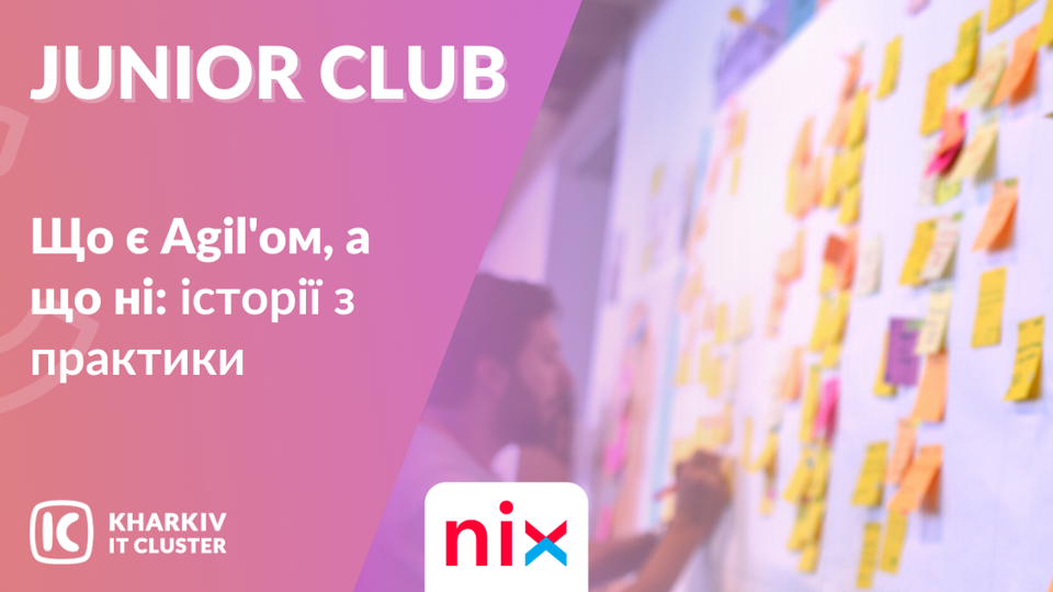 24 березня пройшов закритий вебінар для Junior Club (JC) про те, що таке Agile і з чого почати юному Project Manager. Спікером виступав Олександр Д’яченко, Project Manager і сертифікований Scrum Master у компанії NIX.