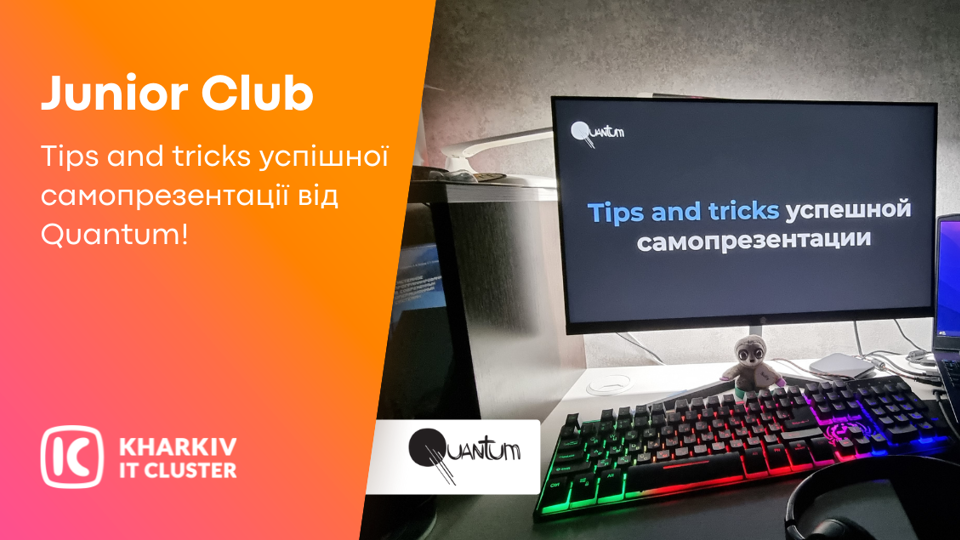 17-го лютого в онлайні відбулася лекція від Quantum у рамках проєкту Junior Club від Kharkiv IT Cluster 💭 Самопрезентація — це навичка чи просто вміння гарно говорити? Як не налажати під час презентації та навіщо готуватися до інтерв'ю? І хто такі ці ваші айсбрейкери? Усі ці питання розкрила Катерина Бочкарьова, HR Business Partner у компанії Quantum. ❄ Айсбрейкер — це така невеличка бесіда на будь-яку тему, що дозволяє побороти ту саму тишу на початку будь-якого інтерв’ю або іншої зустрічі. 🌸 На початку лекції Дар’я Таманова, Employer Brand Manager у Quantum провела невеличкий айсбрейкер, щоб усім було комфортно та легше почати комунікацію.  💫 Для успішного проходження інтерв’ю потрібно мати не тільки гарні практичні навички, а й правильно себе подати. Під час співбесіди також важливо мати чудовий зовнішний вигляд. Важливо використовувати гумор у розумних рамках. Катерина порадила також мати при собі невелике саммарі своїх досягнень та того, що ви будете говорити. 🧐 Також не варто нехтувати репетицією своєї самопрезентації, бо вона допоможе не розгубитись під час промови та говорити впевнено та спокійно.  Ми дуже вдячні компанії Quantum за цікаву та корисну лекцію! А також особисто Катерині та Дар’ї за цікаву та практичну лекцію, де кожен міг побороти свою сором’язливість та зрозуміти чому якісна самопрезентація — це важлива навичка.Унікальний проєкт Junior Club від Kharkiv IT Cluster дає можливість молодим і талановитим людям розвиватися та здобувати цінний досвід для свого майбутнього в ІТ. Долучайся! 🤘