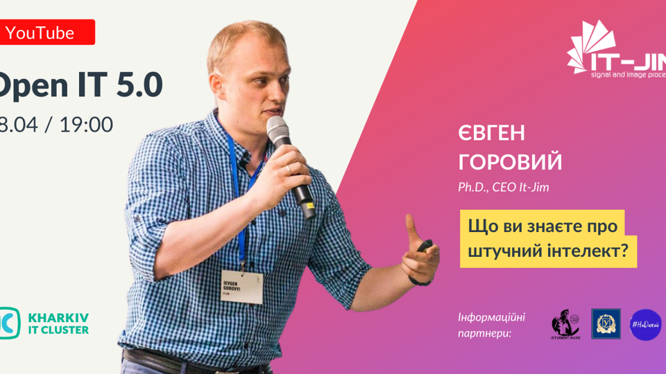 ⏰Де й коли 8 квітня о 19:00 зустрінемося в Zoom і на нашому YouTube-каналі 🎤Спікер Євген Горовий, засновник і CEO компанії IT-Jim, Ph.D. в галузі обробки зображень. 💵 БезкоштовноЄвген Горовий – засновник та СЕО компанії It-Jim, Ph.D. в галузі обробки зображень. Надзвичайно захоплюється комп’ютерним зором та AI/ML. Він поєднав навколо себе команду експертів з значною науковою базою, яка успішно вирішує найскладніші задачі комп'ютерного зору. Євген регулярно проводить лекціі для аудиторій різних рівнів, виступає із доповідями на міжнародних конференціях, а також є керівником освітніх проєктів компанії. It-Jim - це українська компанія, сфокусована на інтелектуальній обробці візуальної інформації: зображень, відео, сигналів. Основні експертизи команди включають комп'ютерний зір, розпізнавання образів, машинне та глибоке навчання, штучний інтелект, доповнену реальність, обробку сигналів та зображень. It-Jim регулярно організують стажування та школи з комп'ютерного зору, технічні лідери компанії часто проводять лекції для студентів та мітапи.Запрошення та посилання на лекцію прийде тим, хто зареєструвався. Чекаємо на тебе! Реєстрація