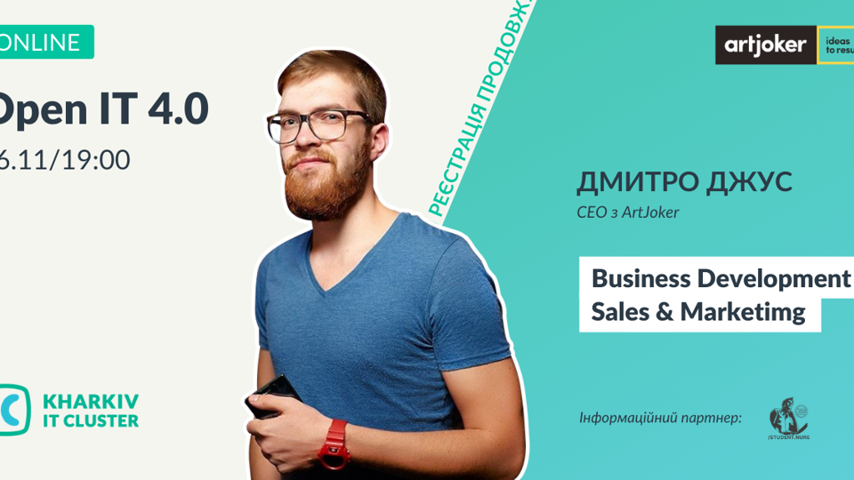 ⏰26.11 о 19:00 відбудеться безкоштовний вебінар проєкту Open IT із CEO Artjoker Дмитром Джусом на нашому YouTube каналі.