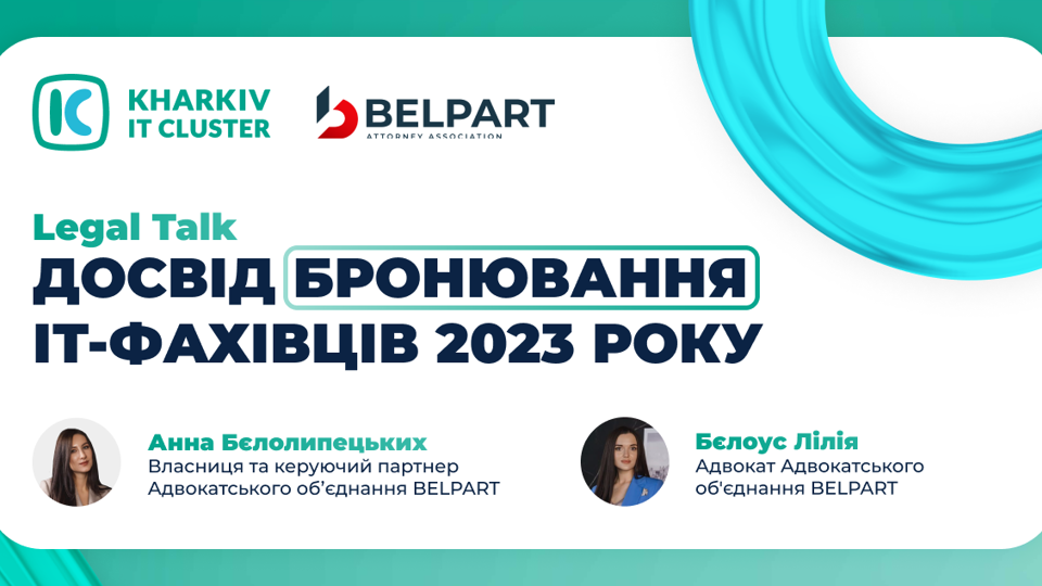 Етап 1: формування та подання списків на бронювання: Компанія формує список працівників, яких вона має намір забронювати, з урахуванням вимог до працівників та їх військово-облікових даних, вказаних у попередньому розділі. Окрім списку, компанія має надати Обґрунтування необхідності бронювання, довідку про кількість військовозобов’язаних, які працюють на підприємстві та документи, які підтверджують статус критичності. Етап 2: розгляд документів Міністерством цифрової трансформації: Мінцифри проводить перевірку повноти заповнення списку, наявності наданого до нього обґрунтування, дотримання вимог щодо кількості військовозобов’язаних, які підлягають бронюванню, та подають його у строк не більше ніж п’ять робочих днів з дня отримання списку на подальше погодження. Етап 3: Погодження пропозиції Генеральним Штабом Збройних Сил України: На цьому етапі перевіряється відповідність військово-облікових даних працівників та відсутність включення до пропозиції працівників з дефіцитною спеціальністю; розглядаються списки протягом 10 робочих днів. Етап 4: Погодження пропозиції Міністерством економіки: Генеральний Штаб після перевірки та погодження пропозиції направляє документи до Міністерства економіки України, яке протягом 5 робочих днів розглядає документи та видає наказ про бронювання. Саме наказ Міністерства економіки України є остаточним документом про бронювання Наприкінці заходу спікерки надали розгорнуті відповіді на актуальні питання учасників зустрічі. Ми хотіли б висловити щирі слова подяки юридичному раднику Kharkiv IT Cluster, компанії BELPART, за надану підтримку в проведенні вебінару Legal Talk. Бажаєте бути в курсі всіх змін у законодавстстві? Ставайте членом Kharkiv IT Cluster і досліджуйте юридичні питання разом з Legal CommunITy!Підпишись на наш телеграм-канал, щоб бути у курсі подій