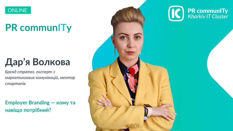 29 вересня о 18:00 відбулася перша зустріч в цьому сезоні. Цей вебінар отримав більше ніж 80 реєстрацій від різних компаній, які бажають розвиватися разом із Kharkiv IT Cluster! Перший мітап провела Дар’я Волкова, бренд стратег, експерт з маркетингових комунікацій, ментор стартапів. На зустрічі учасники пройшли вебінар по формуванню бренду працедавця та зрозуміли, яким чином необхідно залучати до роботи нових співробітників. Дар’я Волкова відповіла на головне питання зустрічі: «Кому і навіщо потрібен Employer Branding?»Також на вебінарі учасники отримали нові знання за темами: