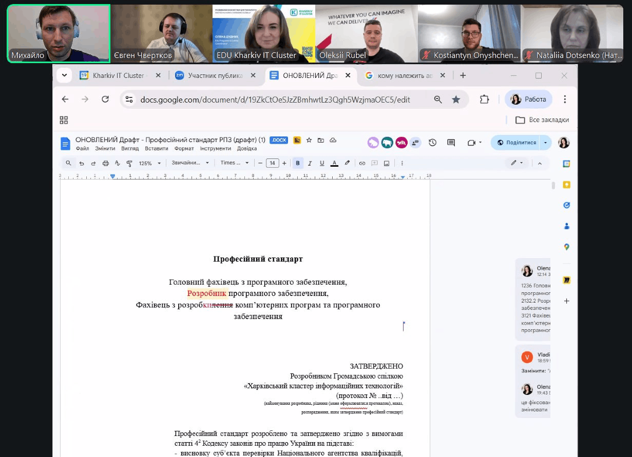 Kharkiv IT Cluster спільно з 23 експертами продовжує роботу над розробленням нового професійного стандарту для групи професій:
