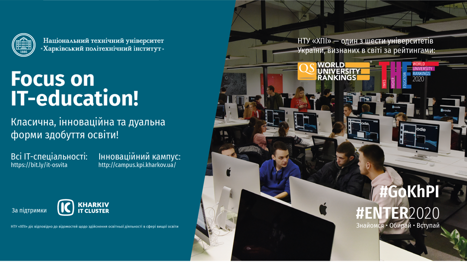 Вища IT-освіта НТУ «ХПІ» — можливість отримання класичної, інноваційної та дуальної освіти. ХПІ пропонує навчання за тринадцятьма спеціальностями і 34-ма освітніми програмами в сфері IT-технологій.