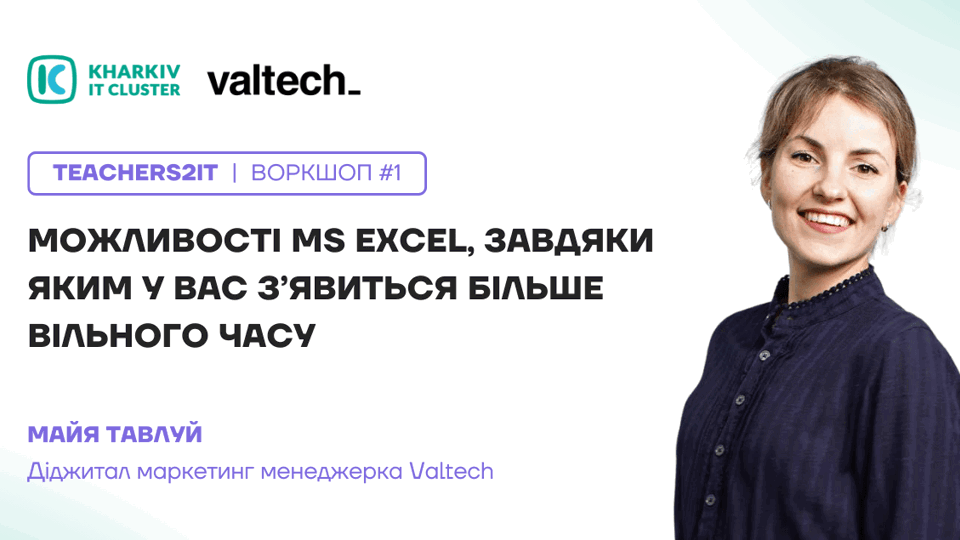 📢 Спікерка: Майя Тавлуй — діджитал маркетинг менеджерка з компанії Valtech — розкаже у форматі практичного заняття реальні кейси зручного застосування інструментів Excel, які допоможуть прискорити та полегшити роботу, а саме: