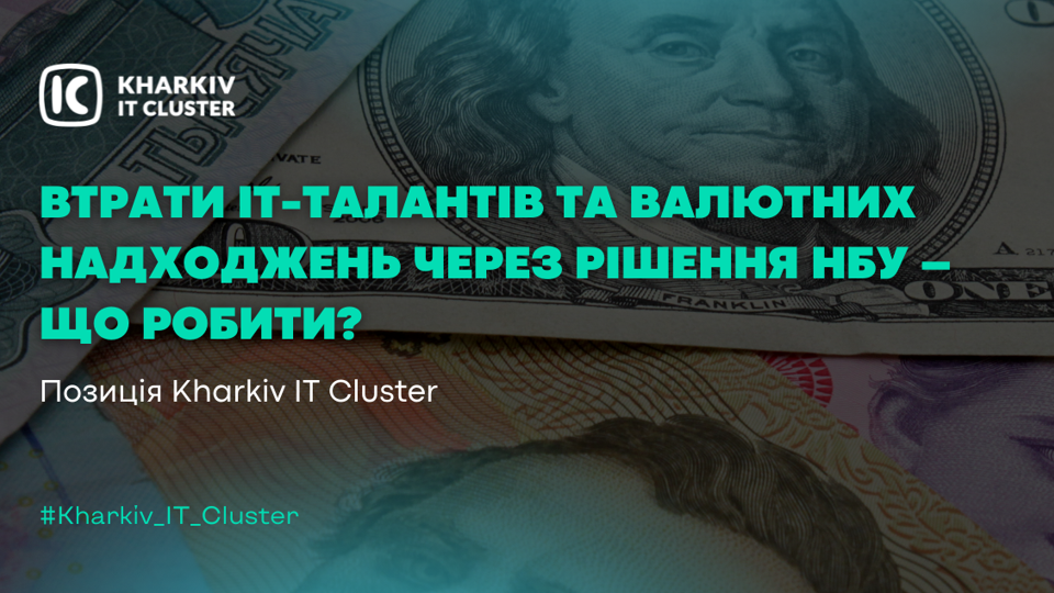 Харківський ІТ Кластер переконаний, що НБУ варто вжити негайних дій для того, щоб компенсувати всі можливі втрати та зберегти ІТ-таланти в Україні. Ми підтримуємо пропозиції, які висловила Асоціація IT Ukraine, які здатні частково нівелювати цю кризову ситуацію. Зокрема, підкреслюємо необхідність дозволу продажу частини валютної виручки експортерам за комерційним курсом і зберегти можливість розрахунків картками та зняття готівки за кордоном за офіційним курсом НБУ (+10%) в межах поточного еквіваленту 50 тис. грн./місяць. Такий компроміс здатен врятувати стабільність валютного надходження у бюджет України та унеможливити витік кадрів з індустрії, забезпечивши її підтримку як однієї з небагатьох працюючих в умовах повномасштабної війни.Підпишись на наш телеграм канал, щоб бути у курсі подій