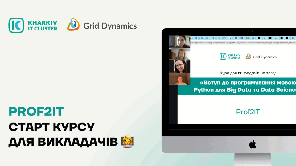 🔷 програмувати за допомогою Python і знати парадигму об’єктно-орієнтованого програмування; 🔷 використовувати системи Git контролю версій коду. 🔷 застосовувати системи обробки великих даних; 🔷 використовувати принципи інтелектуального аналізу даних на основі методів та алгоритмів Data Science; Спікерка курсу — висококваліфікована фахівчиня і практик, спеціалістка по роботі з даними, з досвідом більше 5 років у Python компанії Grid Dynamics Антоніна Бондарчук — Technical Trainer (Python, Big Data, Data Science) at Grid Dynamics Отримані знання викладачі зможуть впроваджувати в освітні дисципліни, яких вони навчають. Реалізація проєкту Prof2IT дає змогу підвищити кваліфікацію викладачів ,та вплинути на якість освіти йрівень знань студентів. Навчання на курсі триватиме три місяці та відбуватиметься онлайн. Kharkiv IT Cluster дякує викладачам за довіру та бажає отримати гарні результати під час підвищення кваліфікації. Довідка: Grid Dynamics — міжнародний лідер у проєктуванні та впровадженні програм цифрової трансформації для компаній з фінансового, технологічного та ритейл-секторів, що входять у список Fortune 500. Компанія має широкий досвід у відбудові складних комерційних рішень. Grid Dynamics веде операційну діяльність з 2006 року, має штаб-квартиру у Каліфорнії та центри розробки у США та Східній Європі. Основні напрямки діяльності — аналітика великих даних, масштабовані кросканальні сервіси, DevOps та підтримка хмарних рішень.Підпишись на наш телеграм канал, щоб бути у курсі вступної кампанії 2023