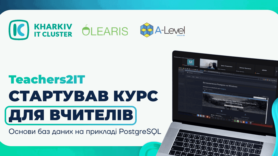 У межах проєкту Teachers2IT від Kharkiv IT Cluster за участі A-Level та Olearis уже пройшло два заняття курсу з «Основ баз даних на прикладі PostgreSQL», який спрямований на підвищення кваліфікації вчителів інформатики та математики.