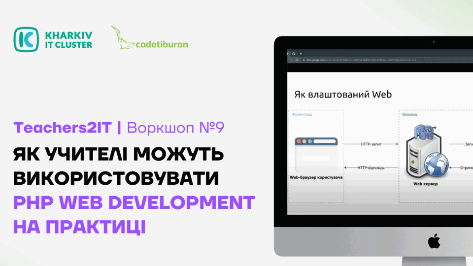 📢 Олександр Міцура — Solutions Architect у компанії CodeTiburon, розкрив тему «PHP Web development» та показав на власних прикладах, як працювати з РНР.