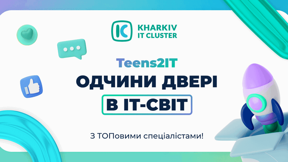 Kharkiv IT Cluster з гордістю презентує проєкт Teens2IT — освітню ініціативу, у межах якої ми здійснюємо зустрічі з визначними фахівцями ІТ-сфери нашої країни. Упевнені, що багато хто стояв перед складним вибором і намагався зрозуміти, ким же стати в шаленому ІТ-світі. Teens2IT створено саме для того, щоб ти зміг здійснити свій вибір на основі знань та досвіду професіоналів галузі. Teens2IT — це можливість зануритися в безмежний океан ІТ-інновацій разом з експертами галузі, дізнатися про різні спеціальності й особливості роботи в ІТ.Що на тебе чекає?