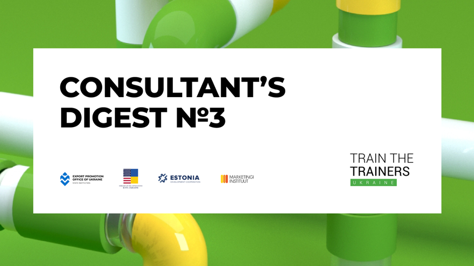 𝗖𝗼𝗻𝘀𝘂𝗹𝘁𝗮𝗻𝘁’𝘀 𝗗𝗶𝗴𝗲𝘀𝘁 – це підбірка корисної інформації для підприємців, експортерів та консультантів в експорті, що допоможе Вашій компанії у виході на іноземні ринки від учасників інноваційної освітньої програми 𝗧𝗿𝗮𝗶𝗻 𝘁𝗵𝗲 𝗧𝗿𝗮𝗶𝗻𝗲𝗿𝘀 для консультантів державного та приватного секторів у сфері експортної діяльності. Читайте третій випуск та підписуйтесь на сторінки команд учасниць, щоб отримувати більше інформації з питань експорту.